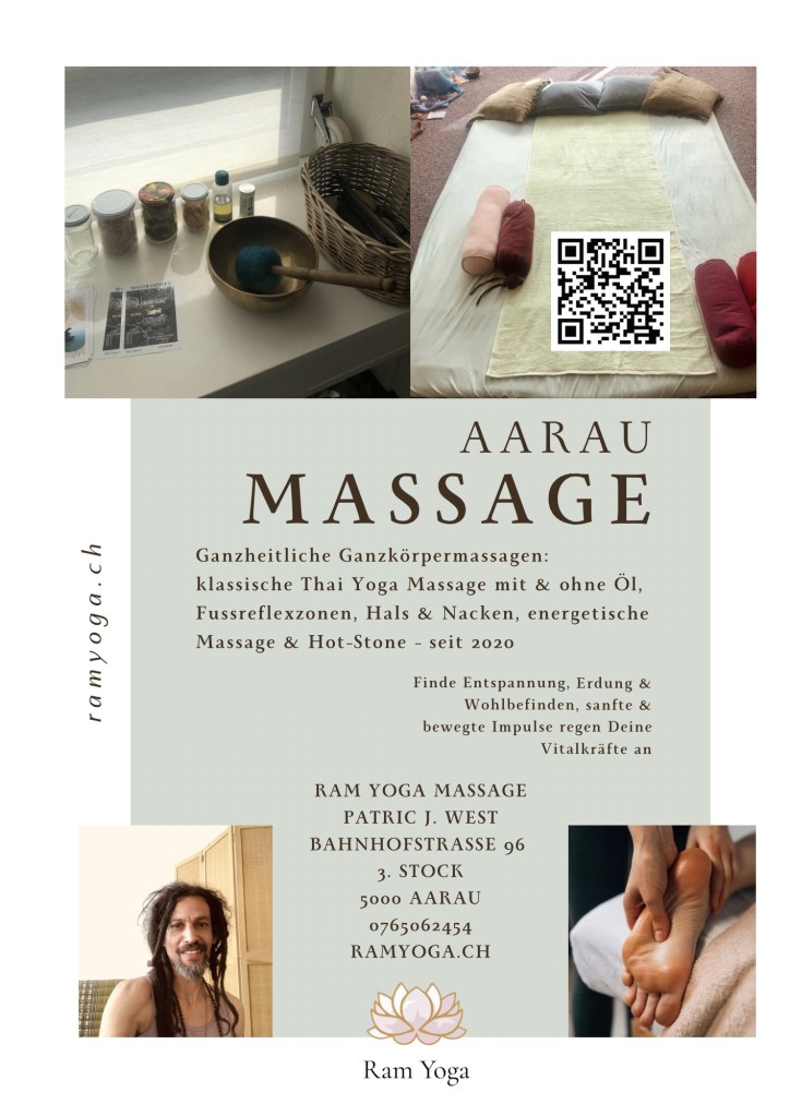 sanfte Gelenke öffnende Bewegungen und Akupressur entlang der Meridiane befreien & regen den Energiefluss in Deinem Körper an. Die traditionelle fernöstliche Behandlungsmethode hilft Verspannung & Stress abzubauen, fördert Durchblutung, Lymphfluss, Atem, Verdauung & Immunsystem, schafft Verbundenheit mit Dir selbst & Wohlbefinden; die Massage findet in bequemer Sport-Kleidung auf der Thai-Matte statt; idealerweise 2 Stunden vor der Massage keine grosse Mahlzeit